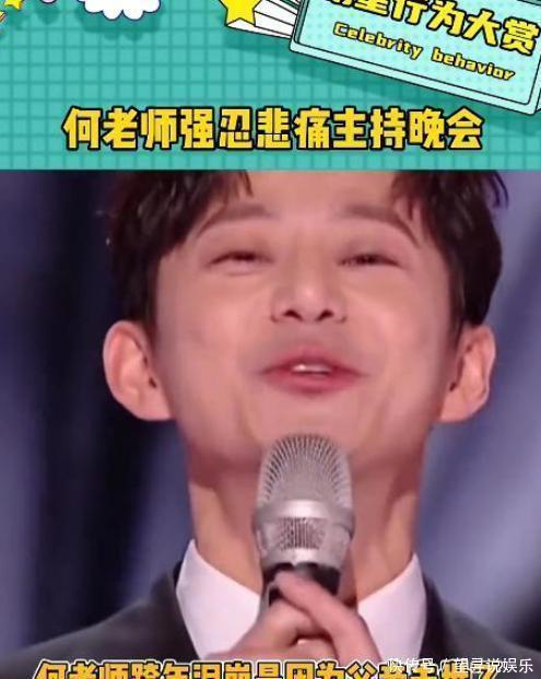 那次主持其实是他刚刚结束父亲的葬礼,父母都离开以后,他只能一个人住在空空荡荡的大房子里。本人现状最近有镜头捕捉到何老师下班的画面,而他最近正忙着为一档节目的顺利播出紧锣密鼓地排练,几乎每天都工作到很晚才收工。不少何老师的粉丝为了看看他一眼,特意在排练厅外守了许久,大家都觉得能看到何老师,这些等待都挺值的。
